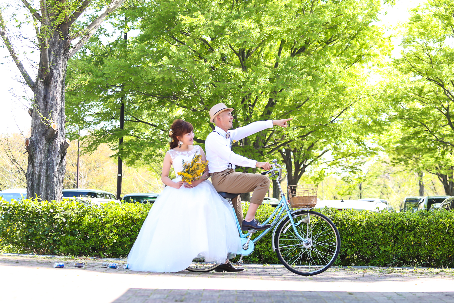 撮影費、撮影データ80〜100カット、ドレス(上限有)、タキシード(上限有)、ヘアメイク(メンズヘアメイク含む)、A4プリント1枚、campicnic特製ウエディングボード