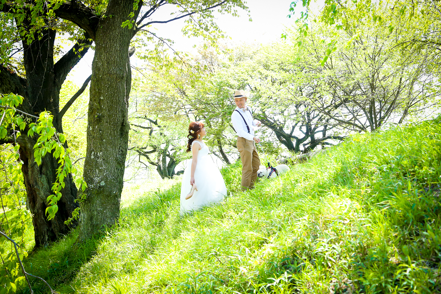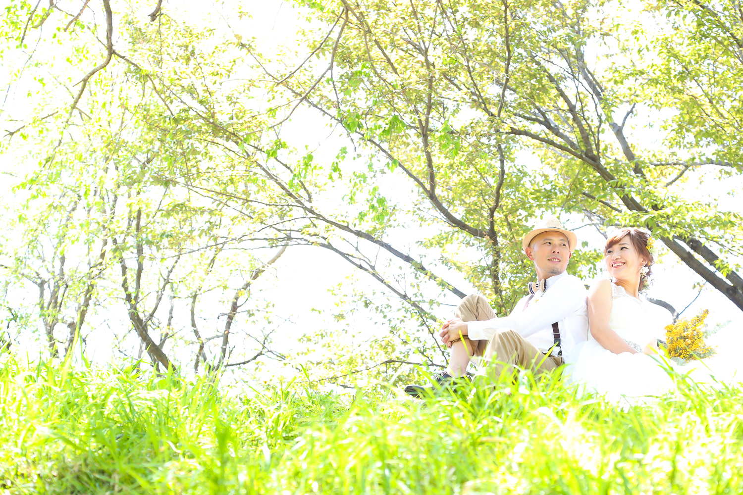 桜が色づき始めるcampicnicの会場内でお写真のみのフォトウェディング♪